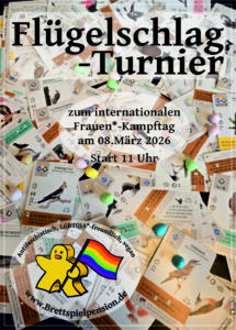 Uns fällt kein Spiel ein, das besser geeignet wäre, um es am internationalen Frauen*kampftag zu spielen! Autorin, Graphikerin und auch die Redaktion bei Feuerland bestand aus Flinta*personen <3. Bei unserem letzten Turnier im Oktober 25 war der Flinta*-Anteil an den Teilnehmenden außerdem 87,5%!